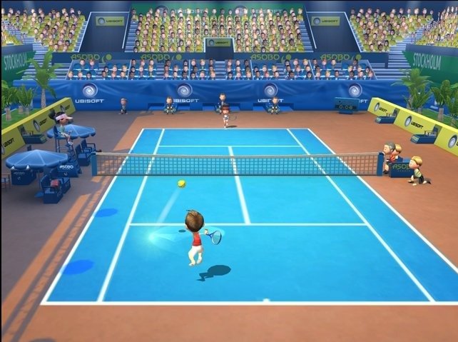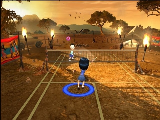 Racquet Sports is a multisport game that includes tennis, ping pong, badminton, squash and beach tennis. The game engages players in 40 rich graphical environments in worldwide locations including an underwater reef, a Moroccan palace, a New York loft, and a fan-filled stadium.The multiplayer feature in Racquet Sports allows the entire family to play cooperatively with each other or to compete against each other at the same time. In addition, users will have the ability to customize their character's body and clothing with different looks and accessories.